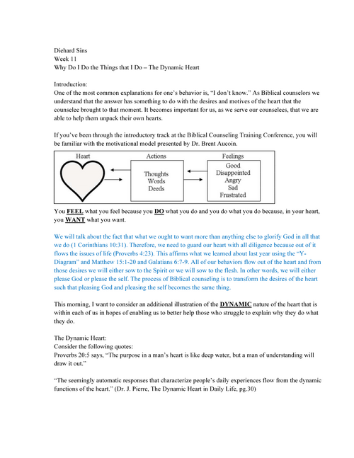 One of the most common explanations for one’s behavior is, “I don’t know.” As Biblical counselors we understand that the answer has something to do with the desires and motives of the heart that the counselee brought to that moment. It becomes important for us, as we serve our counselees, that we are able to help them unpack their own hearts.