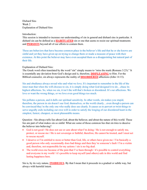 Counseling Diehard Sins